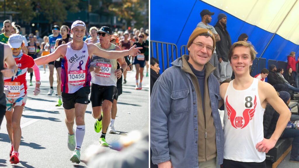 Emily also feels a special kind of pride in the interconnectedness of it all. Working at New Balance and running in New Balance gear while representing Project Purple, as the company makes the organization’s race bibs and singlets, brings everything full circle. “It’s so cool that I get to work at New Balance, see the work behind the scenes, and then also wear their gear in the race,” she says.